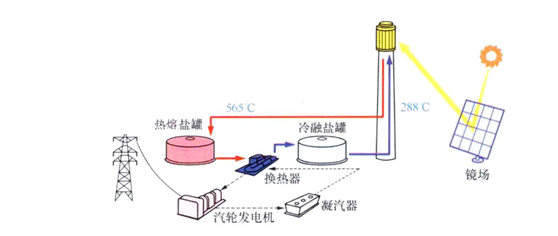 图7. 7熔融盐为介质的太阳能塔式电站系统示意图