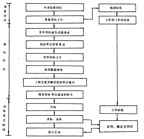 工程招标要遵照一定的程序进行。1984年,国家计委、建设部在《工程招标投标暂行规 定》中,对招标程序作了原则性规定。工程招标的一般程序如图7-1所示。